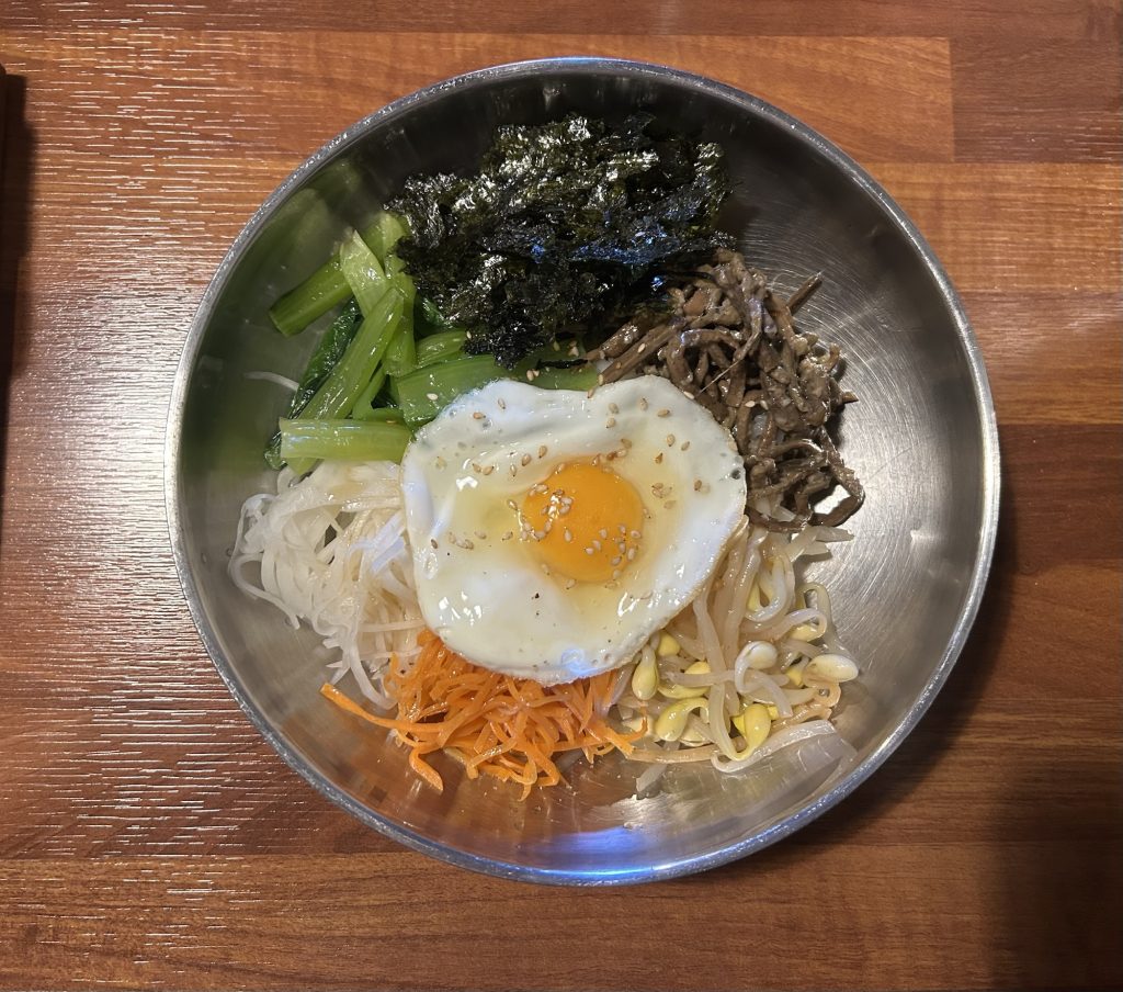 ビビンバも注文しました。どの具材もしっかりと味がついていて、とても美味しかったです。コチュジャンをのせると、さらに本場の味わいに。