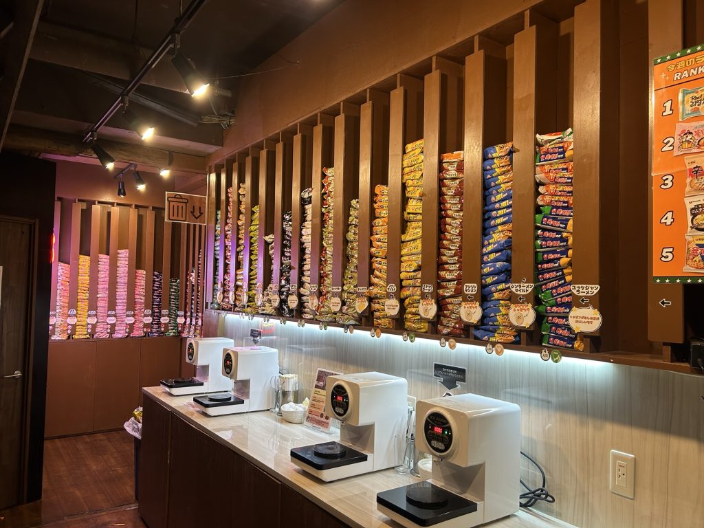 す……すごい!!およそ30種類の韓国ラーメンがずらりと並んでいます。定番の辛ラーメンやノグリに加え、ブルダックはカルボやロゼなど、とにかく種類が豊富。見ているだけでも楽しい~!